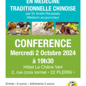 Conférence gratuite organisée par l’association Qi Gong Santé Yffiniac, donnée par le Dr André ROUSSEAU, médecin généraliste, acupuncteur, formateur en acupuncture et Médecine Traditionnelle Chinoise à Niort.