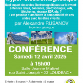 Thème : Quel impact des ondes électromagnétiques sur le vivant ? Antennes-relais, photovoltaïque, éoliennes, wifi, téléphones, réseaux EDF, etc. Il est possible d’améliorer la compatibilité de ces ondes avec les êtres vivants.